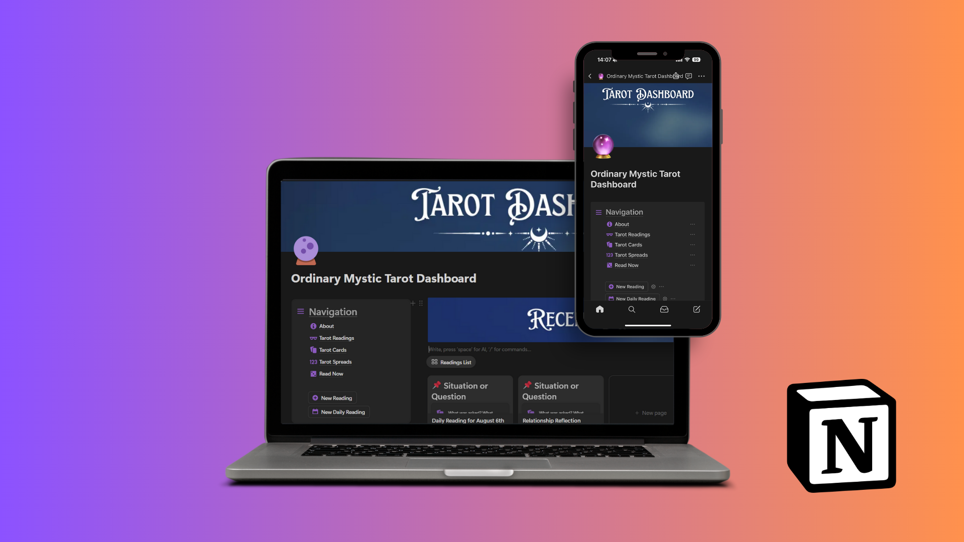 Advanced Notion system to track readings in full detail, with upright and reversed cards, contextual meanings, and statistics that deepen your practice over time.